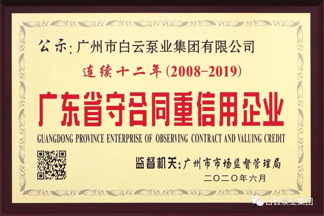 2020年6月,集团再次被广东省市场监督管理局评为“广东省守合同重信用企业”,这是集团连续十二年获此荣誉称号。 “广东省守合同重信用企业”的认证是由广东省市场监督